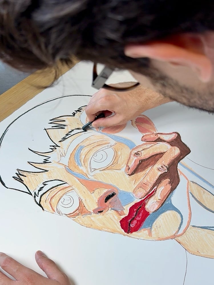 Meet Albert. He is half-drawn half-forgotten. Most of him, at least. His outline wanders, his body barely holds but his hand is finished, precise and strangely certain. It holds his face as if it’s trying to keep him here before he fades. Albert isn’t complete. But something in him is.