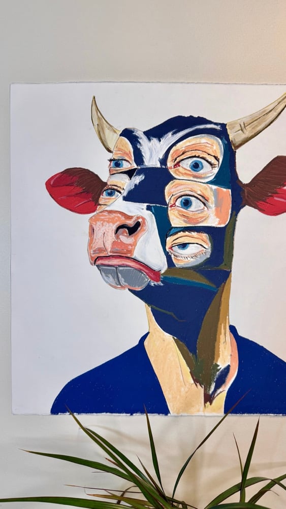 “Milkface”, Oil Pastels on Paper, 18x18 in, 2025.